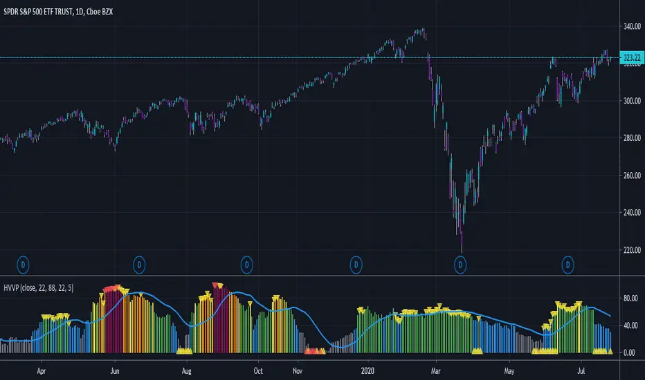 Historical Volatility is a measure of how much price (and now volume ) deviates from its average in a specific time period that can be set. The more price (or/and volume ) fluctuates, the higher the indicator value. Please note it does not measure the direction of price (and volume ) changes, just how volatile price/ volume has become. There are several reasons to care about volatility but it's mainly a risk measure. As volatility increases, so does risk and uncertainty and vice versa. Traders can use the indicator to flag instruments with high volatility which could point to a trend change. It is often used in combination with other signals.