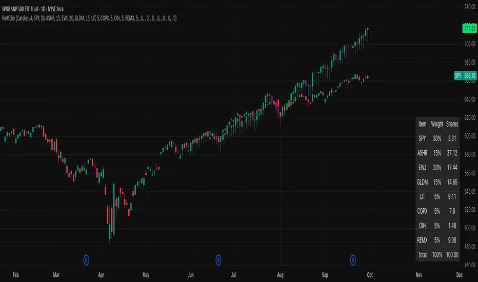 This script lets you create, visualize, and track a custom portfolio of up to 15 assets directly on TradingView.