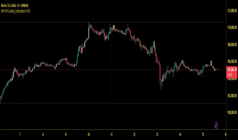 SHYY Real-Time FTC Confirmation is a multi-timeframe trend alignment tool designed to provide real-time confirmation of market direction across up to four configurable timeframes. Unlike traditional tools that rely on closed candles, this version uses in-progress bars to detect live momentum, allowing traders to respond as trends are forming rather than after they are confirmed.