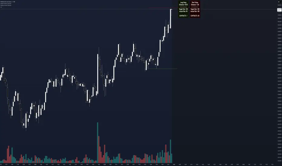 Copy Trading Support: Includes an "Account Multiplier" setting. If you trade 10 accounts via a copy trader, set the multiplier to 10. The indicator will show the total contract size needed across all accounts.