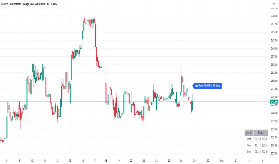 • Draws on-chart markers and a dotted vertical line on WASDE release days.