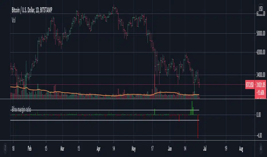 This script tracks the net Bitfinex margin sizes from candle to candle (longs - shorts), and divide it by the total volume from the previous candle. This should give you a ratio of net margin trading volume over total volume on Bitfinex.