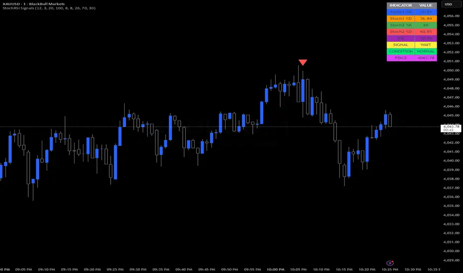 This custom TradingView indicator combines two Stochastic oscillators with RSI to generate clear Buy and Sell signals on the chart. It is designed for traders who want a multi-timeframe confirmation using momentum and overbought/oversold conditions.