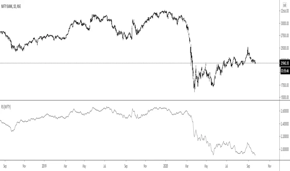 Relative Strength Comparison compares a security's price change with that of a "base" security or index.