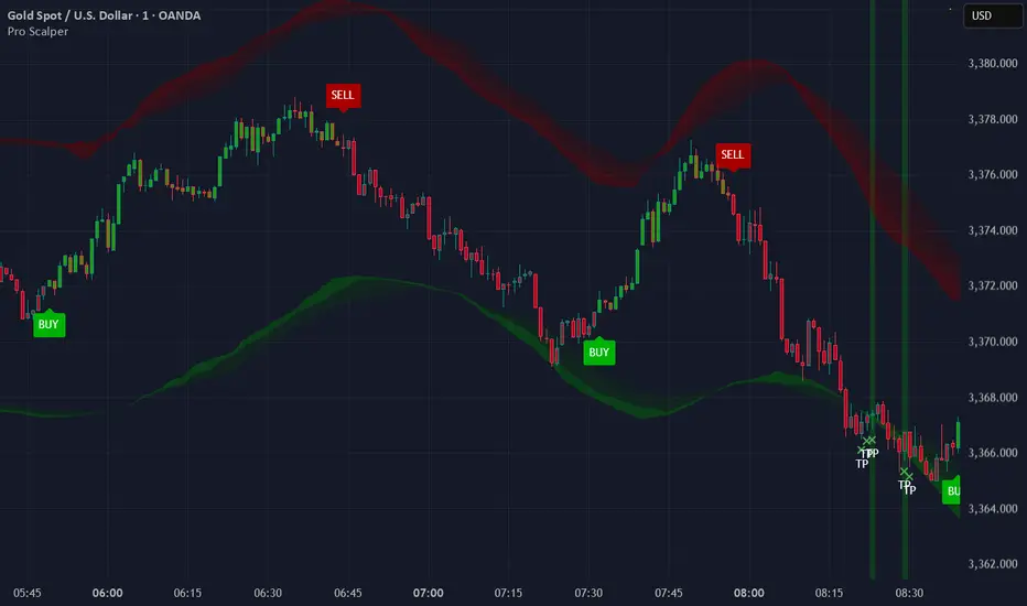 Buy and Sell Signals: Pro Scalper generates buy and sell signals based on a Kalman-adapted Supertrend calculation. These signals help traders identify potential entry and exit points in the market.