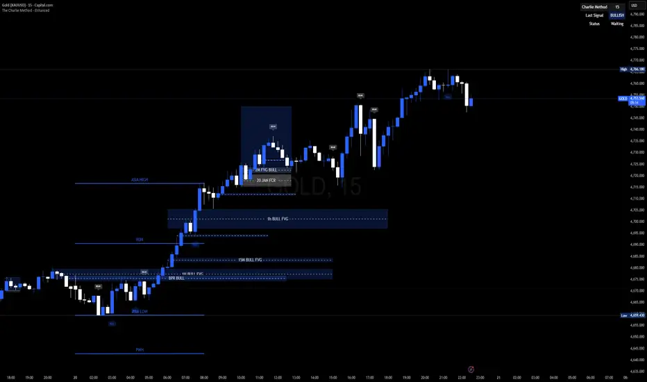 The Charlie Method is a precision-engineered 15-minute confirmation tool built for disciplined traders who wait for price to come to them.