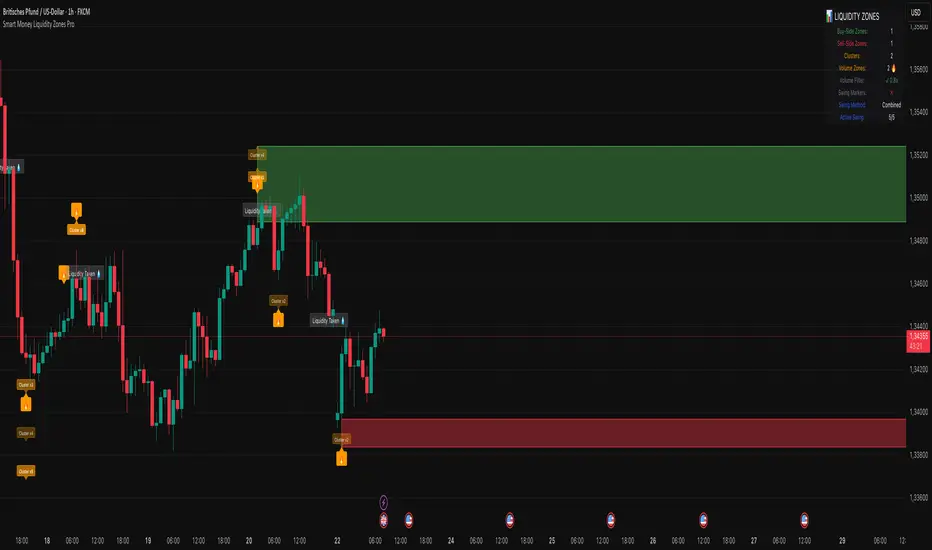 The Smart Money Liquidity Zones Pro indicator identifies and visualizes key liquidity areas in the market where institutional traders (smart money) are likely to have placed their stop-loss orders. These zones represent areas of high liquidity that often act as magnets for price, making them valuable reference points for trading decisions.