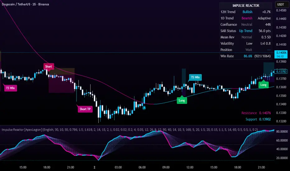 Impulse Reactor serves as a comprehensive technical analysis engine designed to synthesize three distinct market dimensions—Momentum, Volatility, and Trend Structure—into a unified decision-making framework. Unlike traditional methods that analyze these metrics in isolation, this system functions as a central processing unit that integrates disparate data streams to construct a coherent model of market behavior.