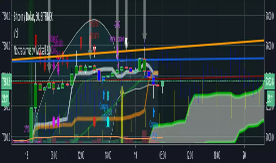 MACD + RSI + EMA + SMA + Ichimoku + overbought + buy, sell +Doji