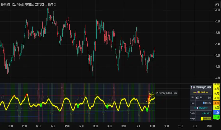 This isn't just another RSI variant—it's a complete reimagining of how we measure and visualize momentum dynamics. Where traditional RSI shows momentum, RoRD shows momentum's rate of change. Where others show static overbought/oversold levels, RoRD reveals statistically significant deviations unique to each market's character.