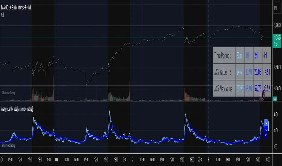 Enhance your trading with our Average Candle Size Indicator, expertly designed to adjust to your specific needs. This powerful tool dynamically calculates the average candle size based on the timeframe you are viewing, ensuring optimal relevance and precision in your analysis.