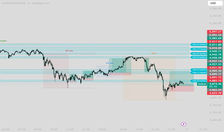 Each zone is created by clustering multiple Pivot Points (swing highs and lows). A zone with "10 touches" is significantly more powerful than one with "3 touches" because it shows that every time Gold reached that price, a large number of orders were triggered.