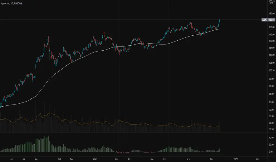 This moving average creates a histogram plot of the percent deviation from a specified moving average. Above paints faint green, and below paints faint red.