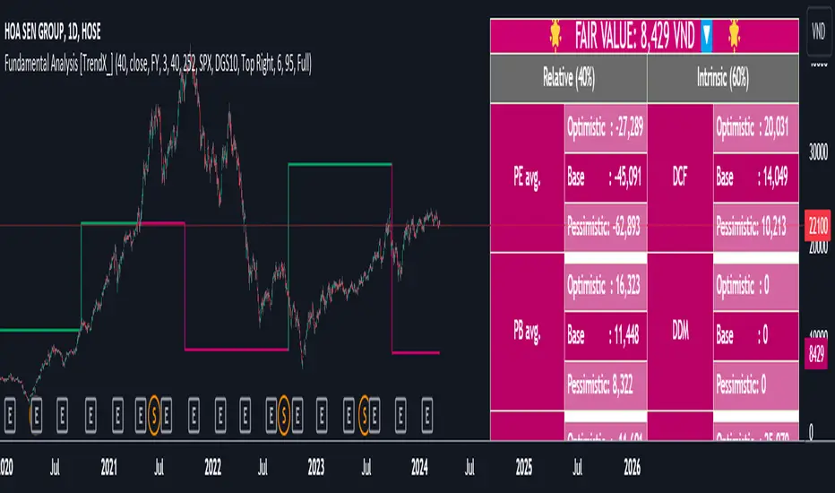 Fundamental Analysis [TrendX_] indicator employs a two-pronged approach to estimate the fair value of a security. This utilizes both relative valuation and intrinsic valuation methods, aiming to achieve a comprehensive understanding of the company's worth.