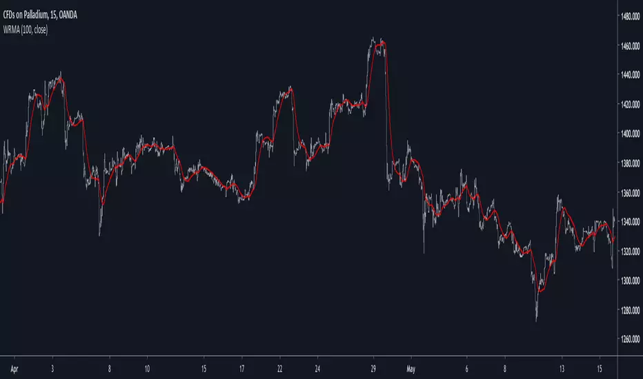 There are tons of filters, way to many, and some of them are redundant in the sense they produce the same results as others. The task to find an optimal filter is still a big challenge among technical analysis and engineering, a good filter is the Kalman filter who is one of the more precise filters out there. The optimal filter theorem state that : The optimal estimator has the form of a linear observer , this in short mean that an optimal filter must use measurements of the inputs and outputs, and this is what does the Kalman filter. I have tried myself to Kalman filters with more or less success as well as understanding optimality by studying Linear–quadratic–Gaussian control, i failed to get a complete understanding of those subjects but today i present a moving average filter (WRMA) constructed with all the knowledge i have in control theory and who aim to provide a very well response to market price, this mean low lag for fast decision timing and low overshoots for better precision.