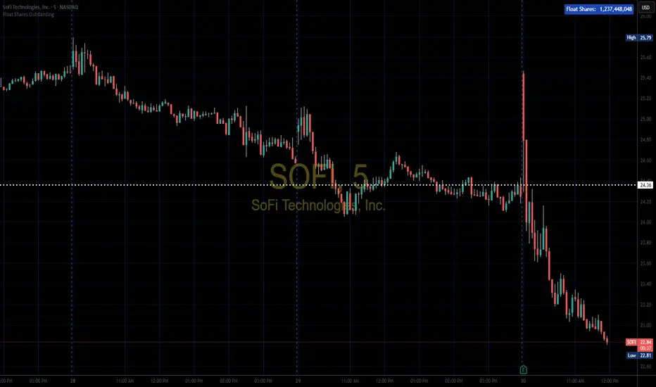This gives an estimate of the stocks float in a discreet table at the top right of the chart.