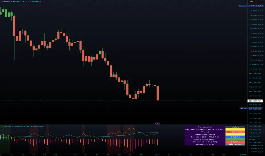 This indicator measures bullish vs. bearish pressure using volume-based tension and net imbalance.