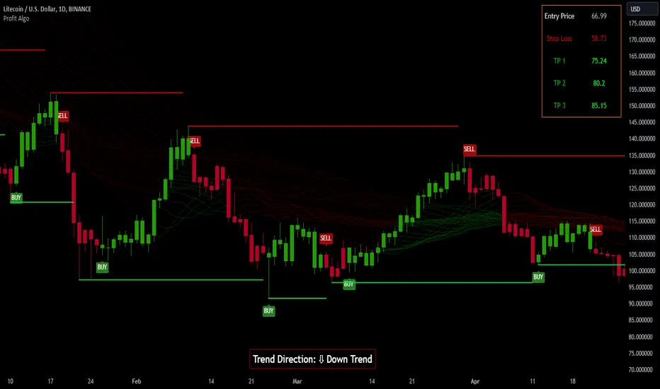 ProfitAlgo is a powerful and intuitive trading tool specifically developed to cater to the requirements of both beginners and experienced traders. It is designed to function in every timeframe and on all cryptocurrencies, stocks, indices, forex, futures, currencies, ETF's, energy and commodities. This innovative tool provides real-time signals, comprehensive trend analysis, and advanced risk management features, making it an indispensable asset for traders of all levels. This cutting-edge tool generates 'BUY' and 'SELL' signals, complemented by an array of robust analytical tools. Empower your trading analysis with this all-in-one solution and add to your arsenal of indicators to make well-informed decisions.