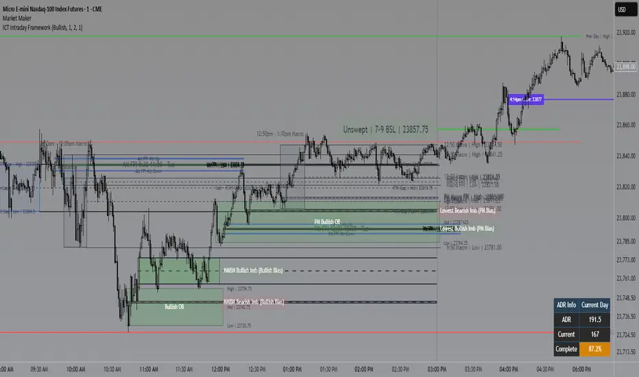 ICT Intraday Framework - Complete Trading AutomationAutomate your ICT trading analysis with this comprehensive indicator that tracks all essential intraday concepts in one powerful tool.