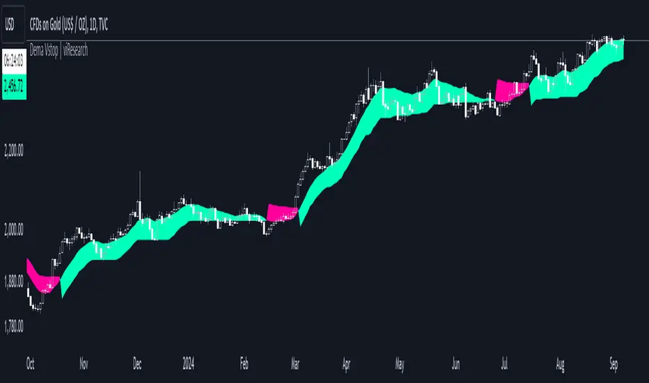 The "Dema Vstop | viResearch" script is an innovative trend-following tool that combines the smoothness of DEMA with the adaptive qualities of Vstop. By offering a customizable and dynamic system, this indicator helps traders navigate the complexities of volatile markets while reducing noise and false signals. Incorporating this script into your trading strategy can improve trend analysis and increase the accuracy of entries and exits.