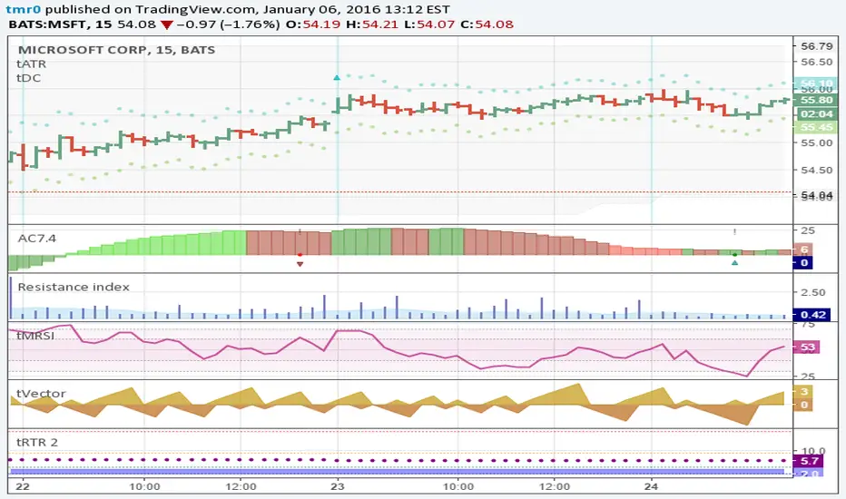 Histogram shows the market resilience as volume ratio to the true range. Area is EMA volume.