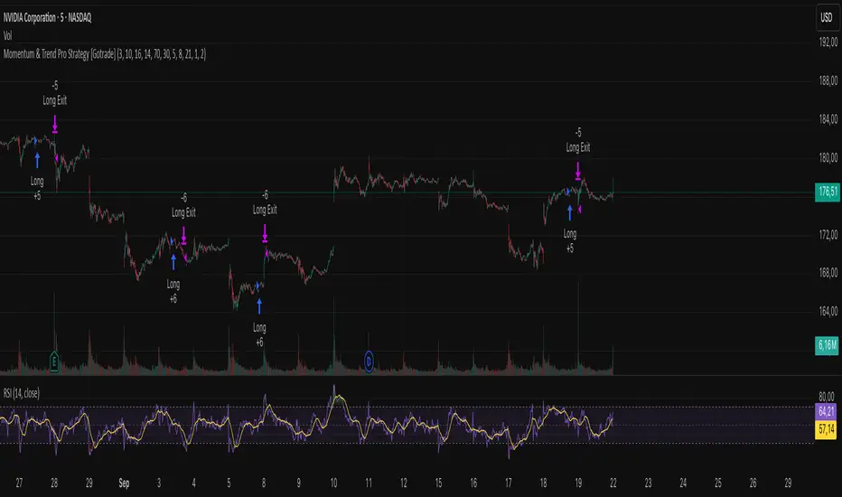 📈 Momentum & Trend Pro Strategy is a backtestable trading system that combines three of the most popular day-trading tools in one package: