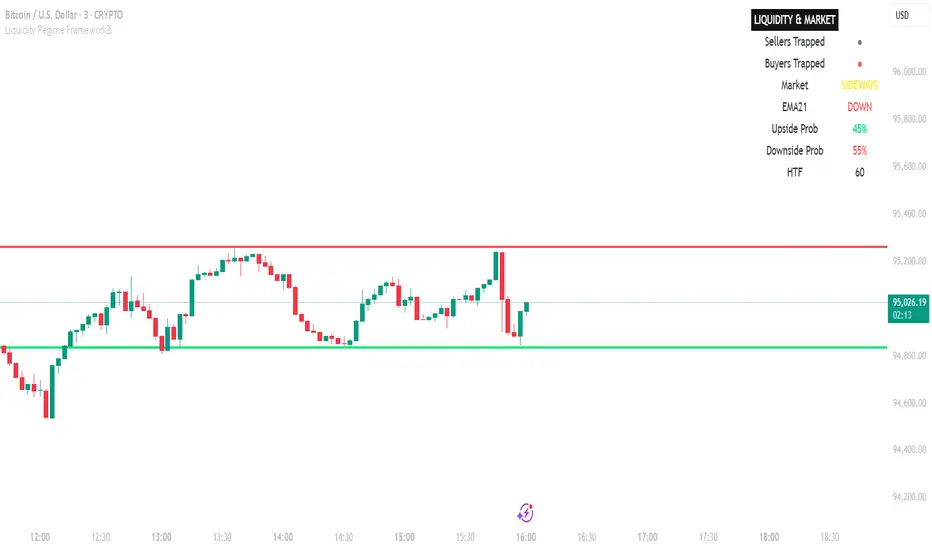 Liquidity Regime Framework™ is a professional market-structure and liquidity framework designed to help traders understand market context, not generate trade signals.