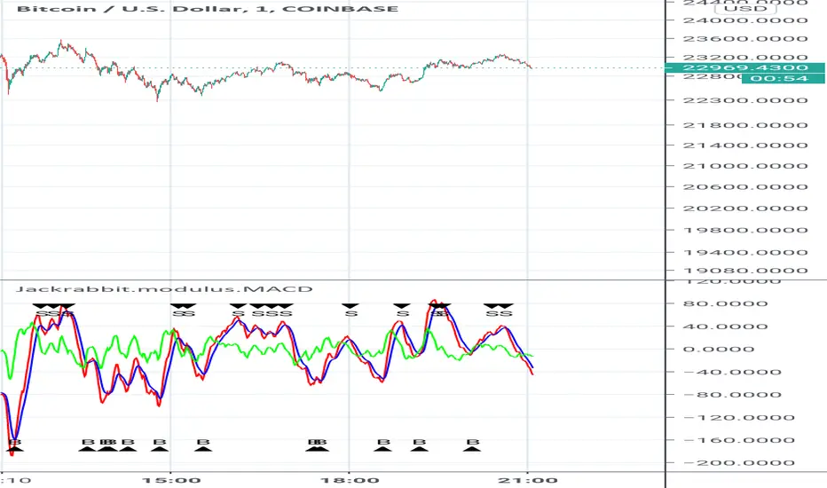 The Jackrabbit modulus framework is a plug in play paradigm built to operate through TradingView's indicator on indicatior (IoI) functionality. As such, this script receives a signal line from the previous script in the IoI chain, and evaluates the buy/sell signals appropriate to the current analysis. The results are either combined with the signal line, or used as confirmation to the signal line. A new signal line is generated for the next script in the link.