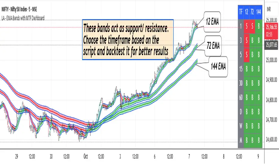 Detailed Explanation of the LA - EMA Bands with MTF Dashboard Indicator