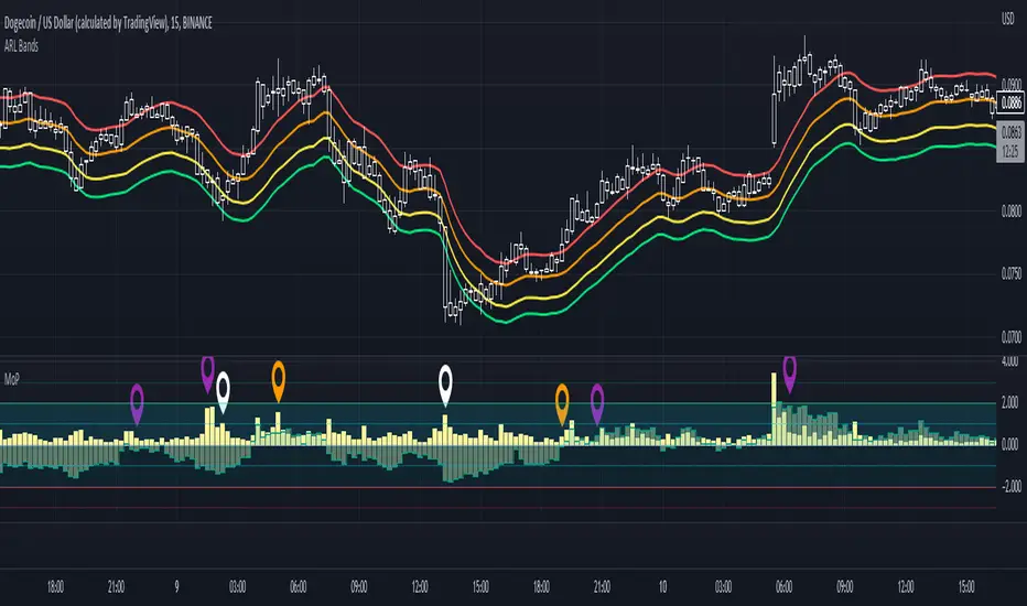 Extra indicator shown in chart is an adjusted "ARL Bands".