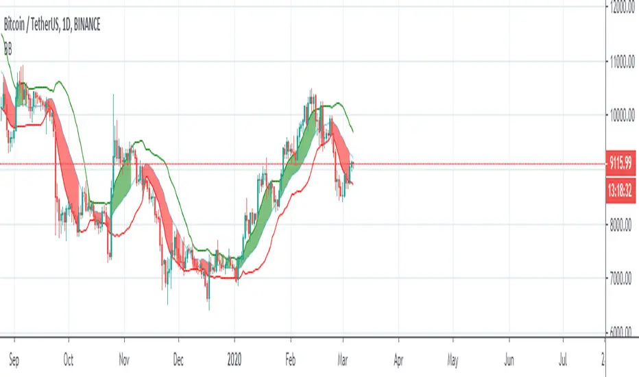 To go short (to sell), you have to wait for one of the candlesticks to close below the BB lower band. (background color is red)