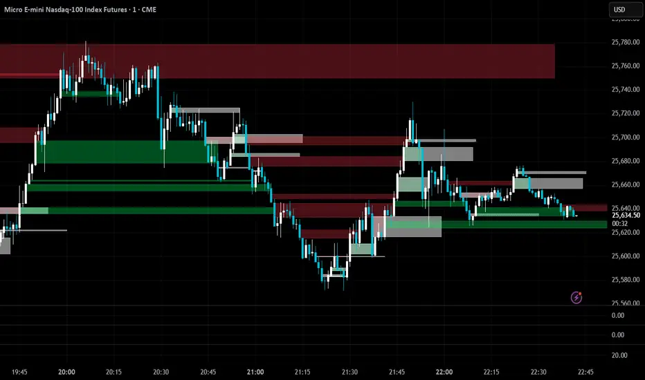 Bug Fix:Inverted FVG (IFVG) boxes now stop correctly when price breaks through them a second time. On the second break, the right edge of the IFVG is clipped to the break bar and the zone no longer extends forward, while still remaining visible on the chart. Previously, IFVGs could keep stretching into the future and clutter the view.