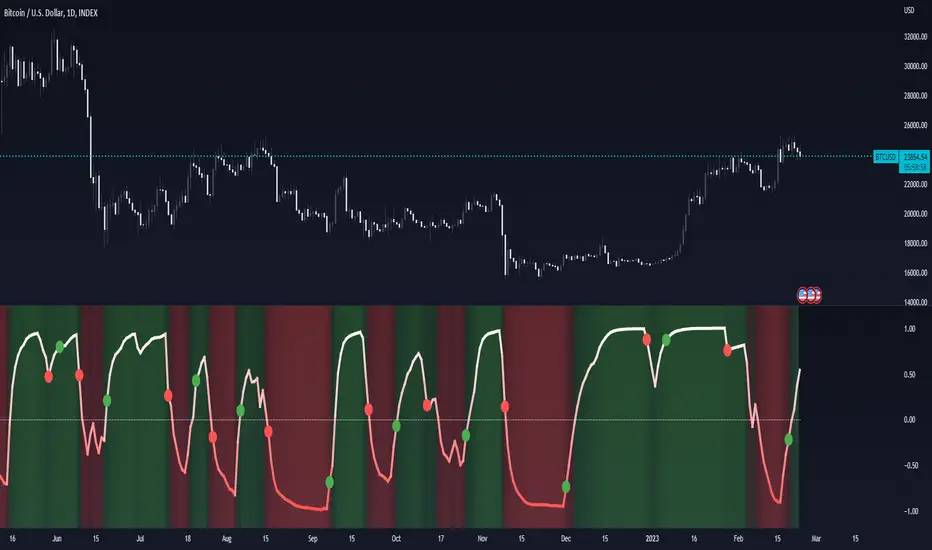When ratio line moves up it gradualy changing background from -1 to 1 from red to green and vice versa to understad what is a trend or a majore sentiment of people