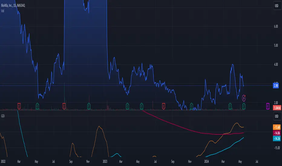 The GDI is a new indicator and further behavior analysis such as concave up/down, inflection points, cross over points, divergence/convergence, and minimized/maximized points has to be taken into consideration in order to confirm more precise trends. Also remember that the GDI is a trend tracker and cannot pre identify sudden, large jumps or drops.