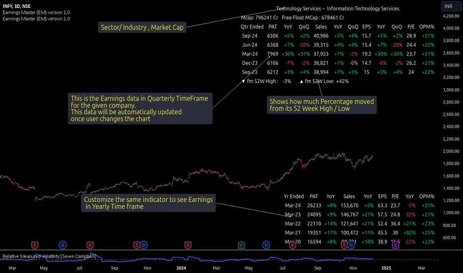 - Thanks for our new Indicator Earnings Master (EM). This indicator is designed to provide detailed financial insights into a company's performance by displaying key financial metrics such as Profit After Tax (PAT), Operating profit margin (OPM), Earnings Per Share (EPS), Total Revenue etc.