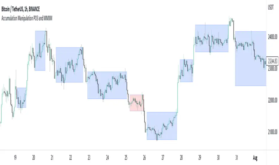 Alternatively, you can use the accumulation boxes to try and identify MMXM models, that is Market Maker Buy and Market Maker Sell Models, where price moves in phases of consolidation, smart money reversal and re-accumulation.