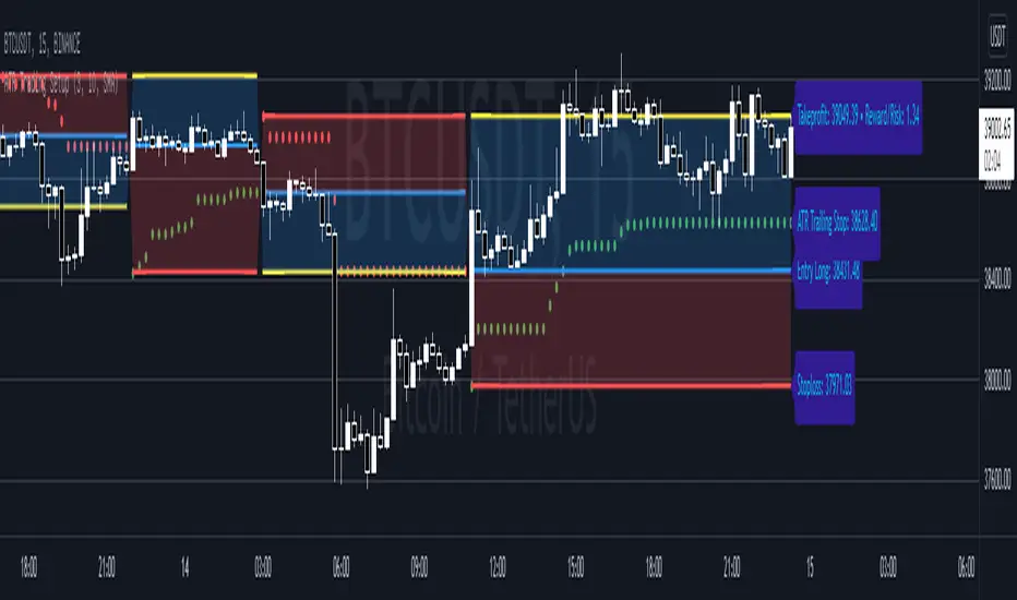 This simple script base on function of ATR Trailing Stop (aka SuperTrend) to plot Trading Setup on chart with detail as below: