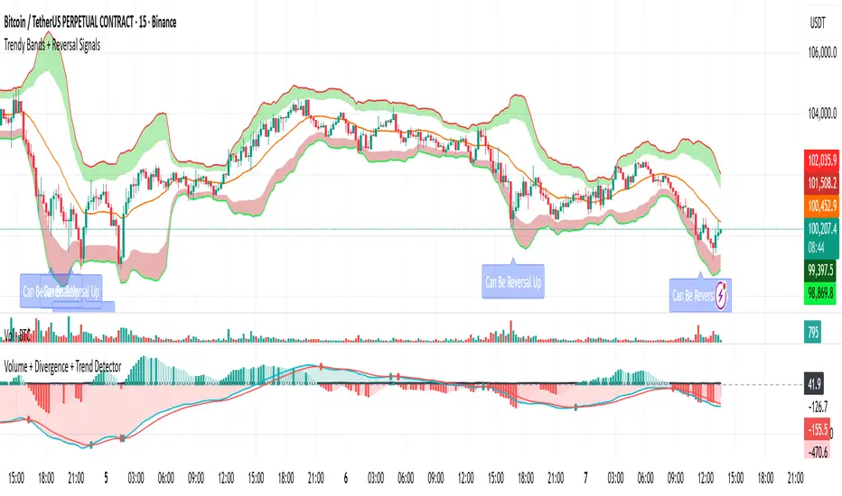 This is a versatile and powerful TradingView indicator that combines a dual Bollinger Bands system with momentum-based reversal signals. It's designed to help traders identify the prevailing trend, potential volatility expansions/contractions, and key reversal points in the market.
