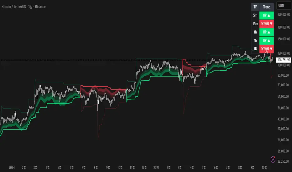 밴드/추세는 ATR 기반이라 변동성 급등 시 지연/오버슈트가 발생할 수 있습니다.