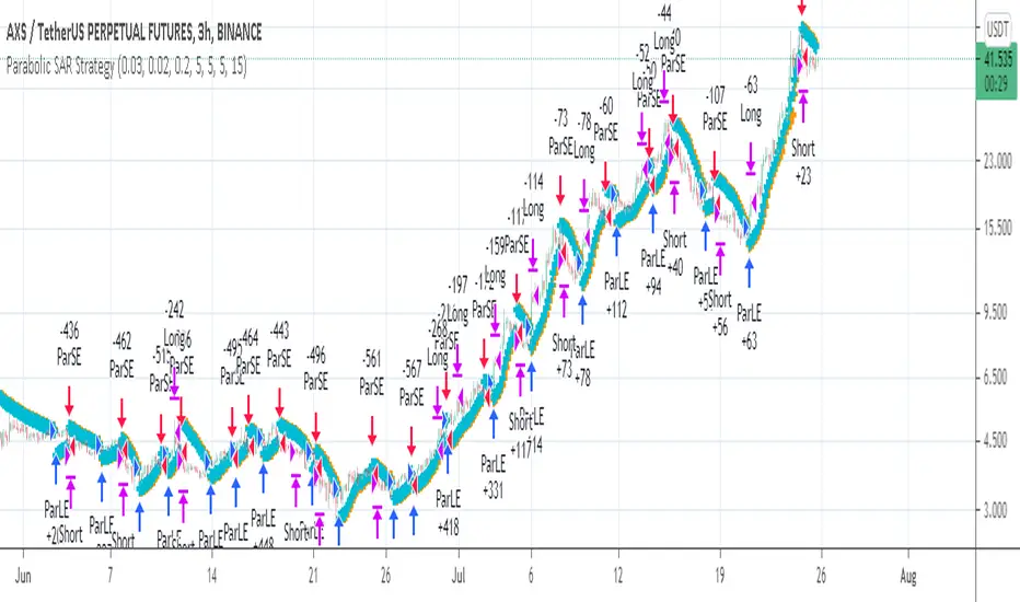 This is my first strategy! I took the Parabolic SAR Strategy and added Stop Loss and Take profit, and I can see some fantastic results in 2h-3h-4h on some of the Crypto coins.