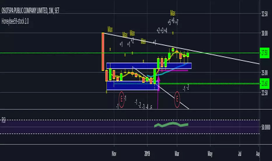 For free TradingView plan, you can add two more indicators to the chart. That means you may add RSI and MACD indicators with same parameters as those setup in Honeybee59-stock to your graph. DrGraph regularly publishes his educational ideas on using features provided in Honeybee59-stock for profitable investments. You can follow him for how to use the tools in trading stocks.