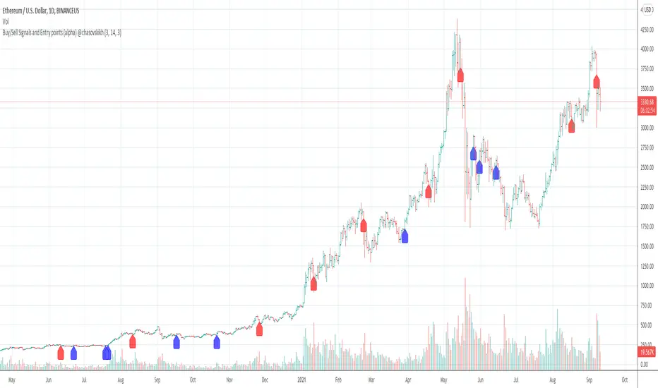 Indicator shows entry points (buy signals). Bets results on 15M TF and higher. (1H recommended)