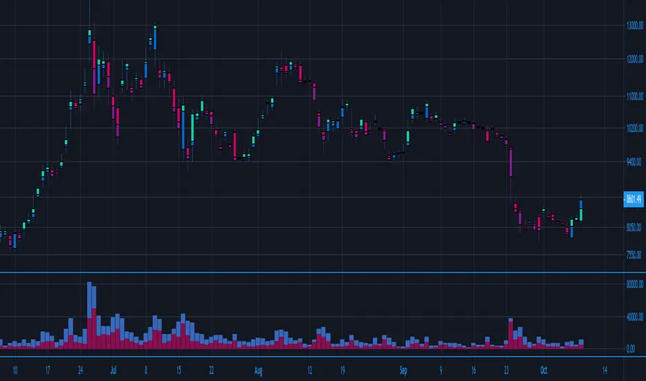 This script plots given first timeframe inputs candles with data from second timeframes candle closes. If you change inputs you should change also TF1/TF'2 so that it is equal to first time frames / second time frame. For example if first timeframe is Daily and second is 15. There is 96 times 15m candle in the Day so TF1/TF2 should be 96. Other inputs are percentiles that will be used in the calculating candlesticks wicks and body parts. Default values 98 75 50 25 2 percentiles. Last candle is wrong because script can't calculate until bar is closed.