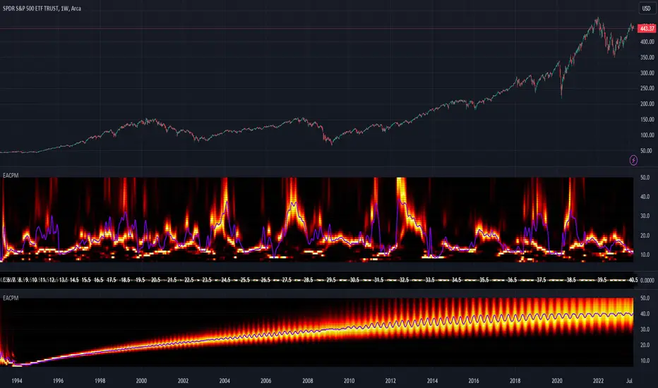 What you see is a new species of autocorrelation periodogram combining Ehlers' innovation with my fascinations of what ACP could be in a Pine package. One other intention of this script's code is to pay homage to Ehlers' lifelong works. Like Kondratiev, Ehlers is also a hardcore cycle enthusiast. I intend to carry on the fire Ehlers envisioned and I believe that is literally displayed here as a pleasant "fiery" example endowed with Pine. With that said, I tried to make the code as computationally efficient as possible, without going into dozens of more crazy lines of code to speed things up even more. There's also a few creative modifications I made by making alterations to the originating formulas that I felt were improvements, one of them being lag reduction. By recently questioning every single thing I thought I knew about ACP, combined with the accumulation of my current knowledge base, this is the innovative revision I came up with. I could have improved it more but decided not to mind thrash too many TV members, maybe later...