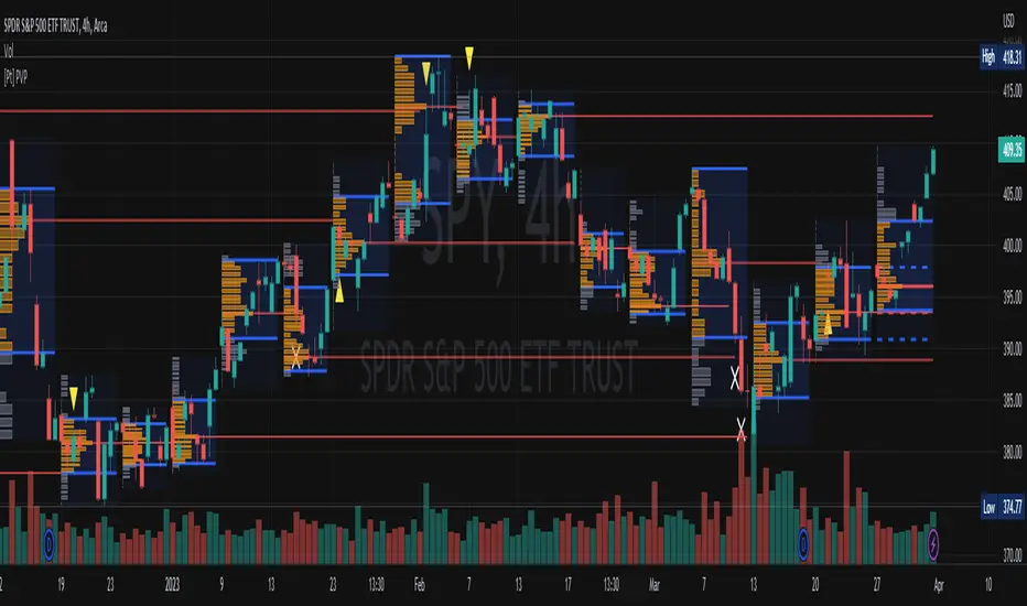 Key Difference with TradingView's PVP indicator - TradingView's PVP intraday period does not align with standard intraday timeframes as it is determined by # of bars. This script provides volume profiles that aligns with higher timeframe periods.
