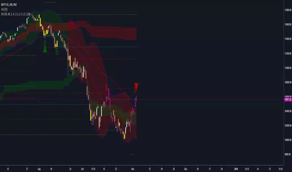 For now, price in the green zone and below it is heavily oversold, and price in the red zone and above it is heavily overbought. In an upward trend, the green zones are "ideal" longs and in a downward trend, the red zones are "ideal" shorts. The strength of this addition is its usability in a sideways setup - when price is sideways, the top and bottom zones function as a range which you can long and short.