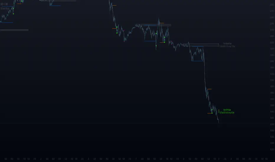 • Multiple Session Tracking: Monitor up to 6 different time-based ranges simultaneously (pre-configured for NY AM Open, NY PM Open, Lunch, Premarket, Midnight Open, and a custom session).