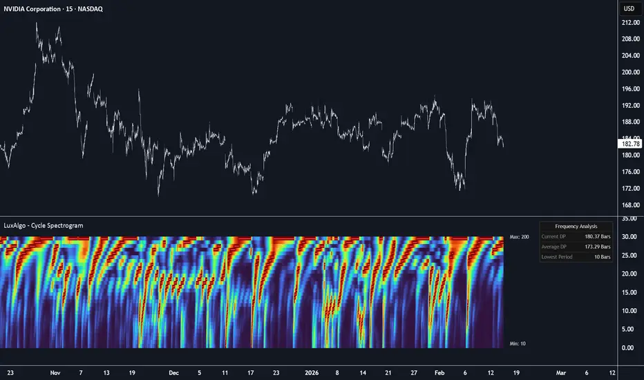The Cycle Spectrogram indicator is a spectral analysis tool that visualizes the power of various price cycles to identify dominant periodicities and market rhythms.