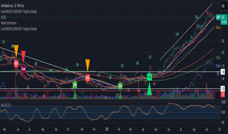 Cruces EMA5/20 y EMA20/50 - Triángulos y Etiquetas