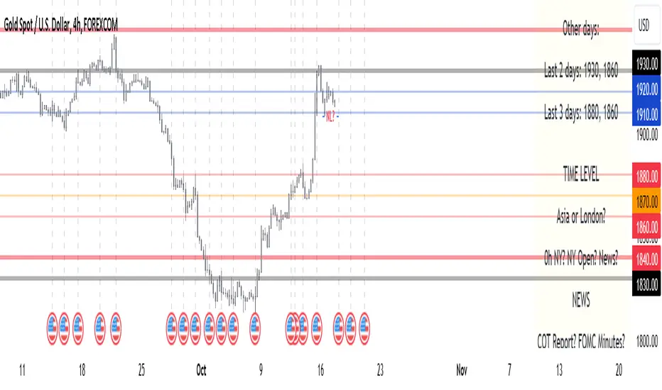 This is a Trading note for XAU/USD Traders. PB believes that Market Makers will try to protect the Key levels on chart, especially those around Swing High and Swing Low. Therefore, the indicator will show where the noticeable prices. It is displayed as follows: